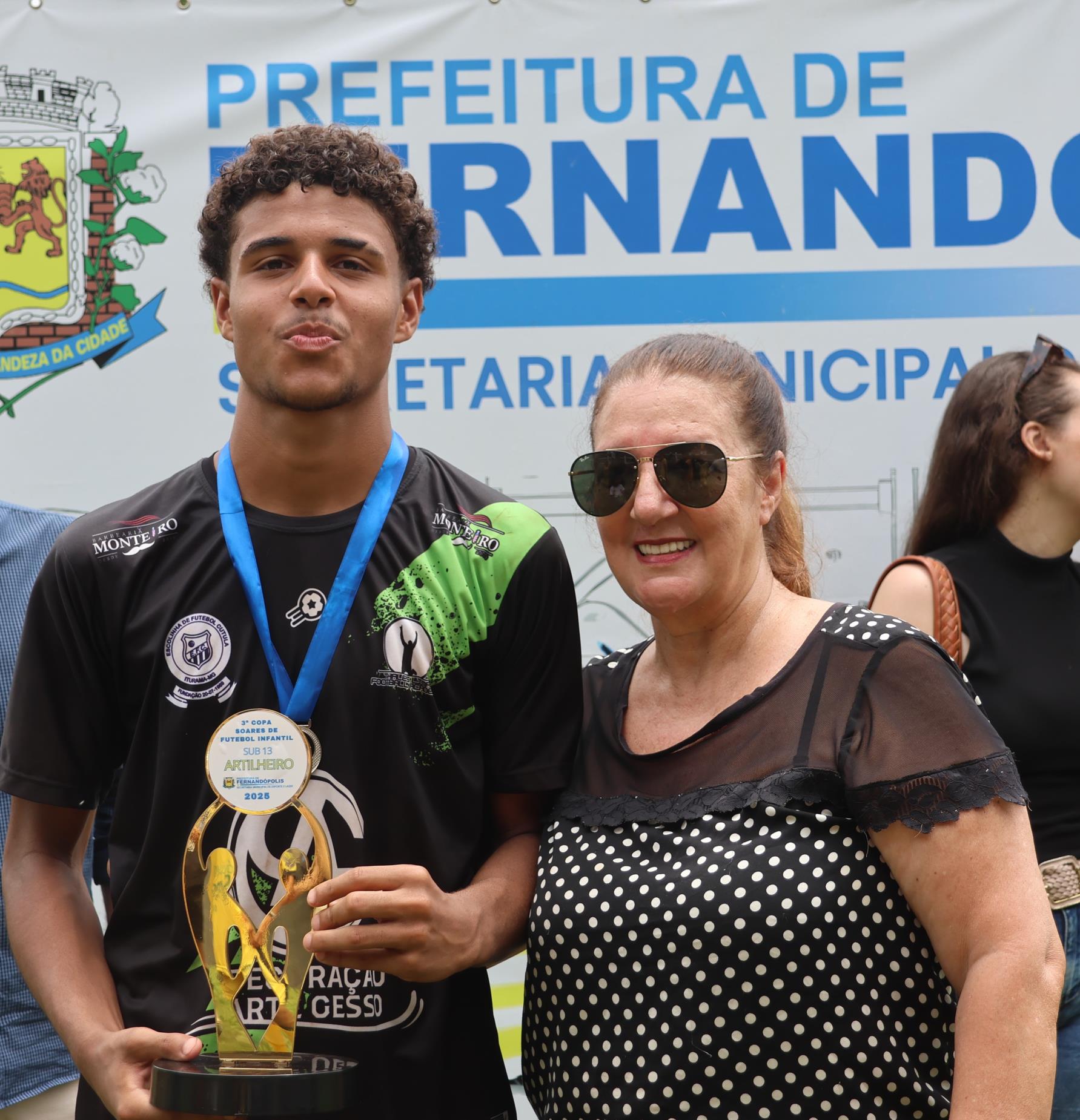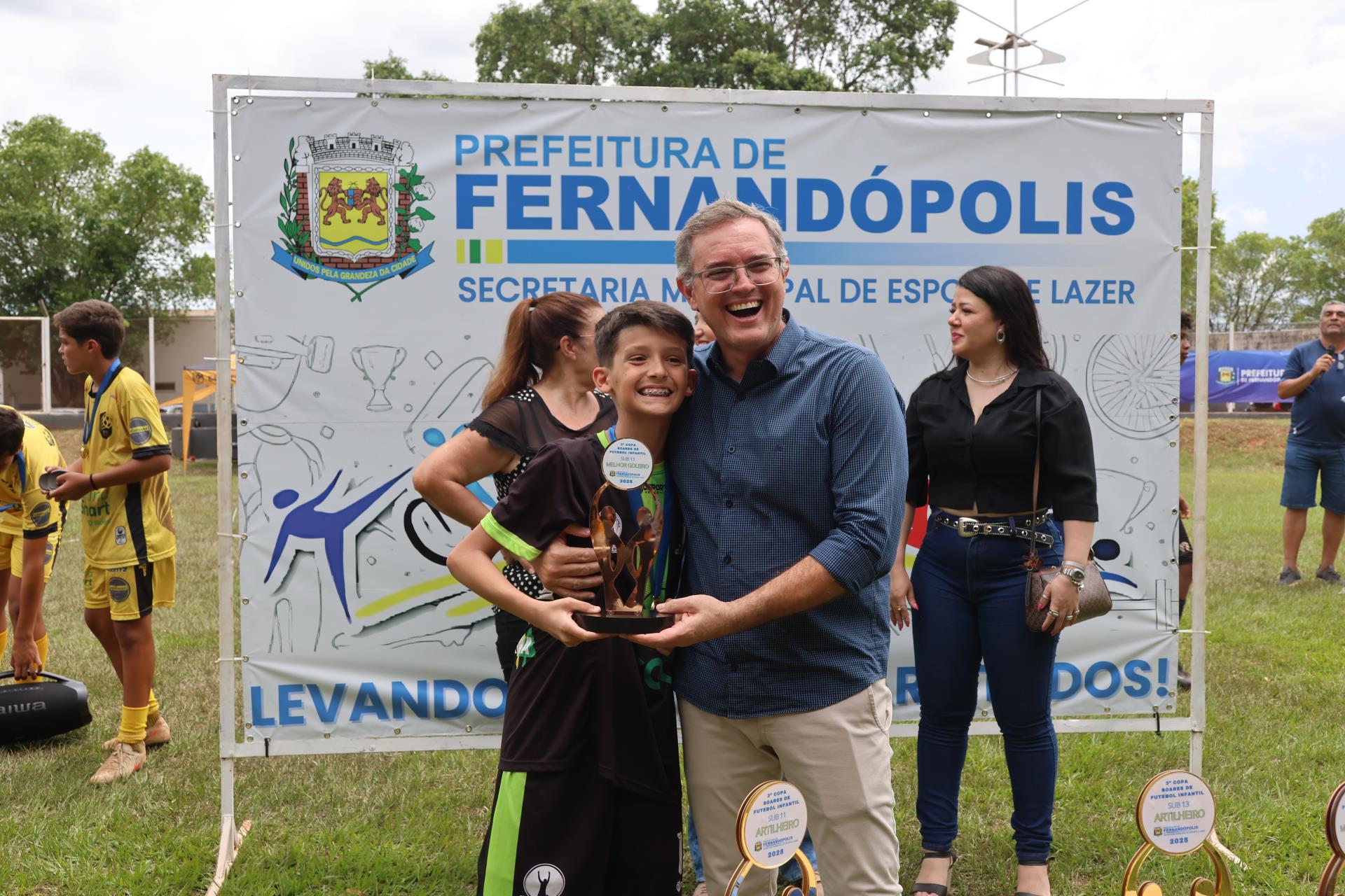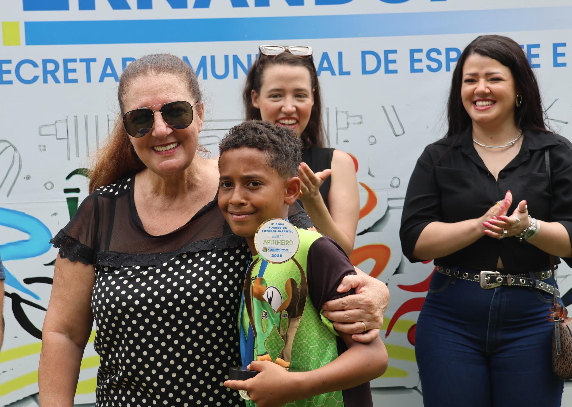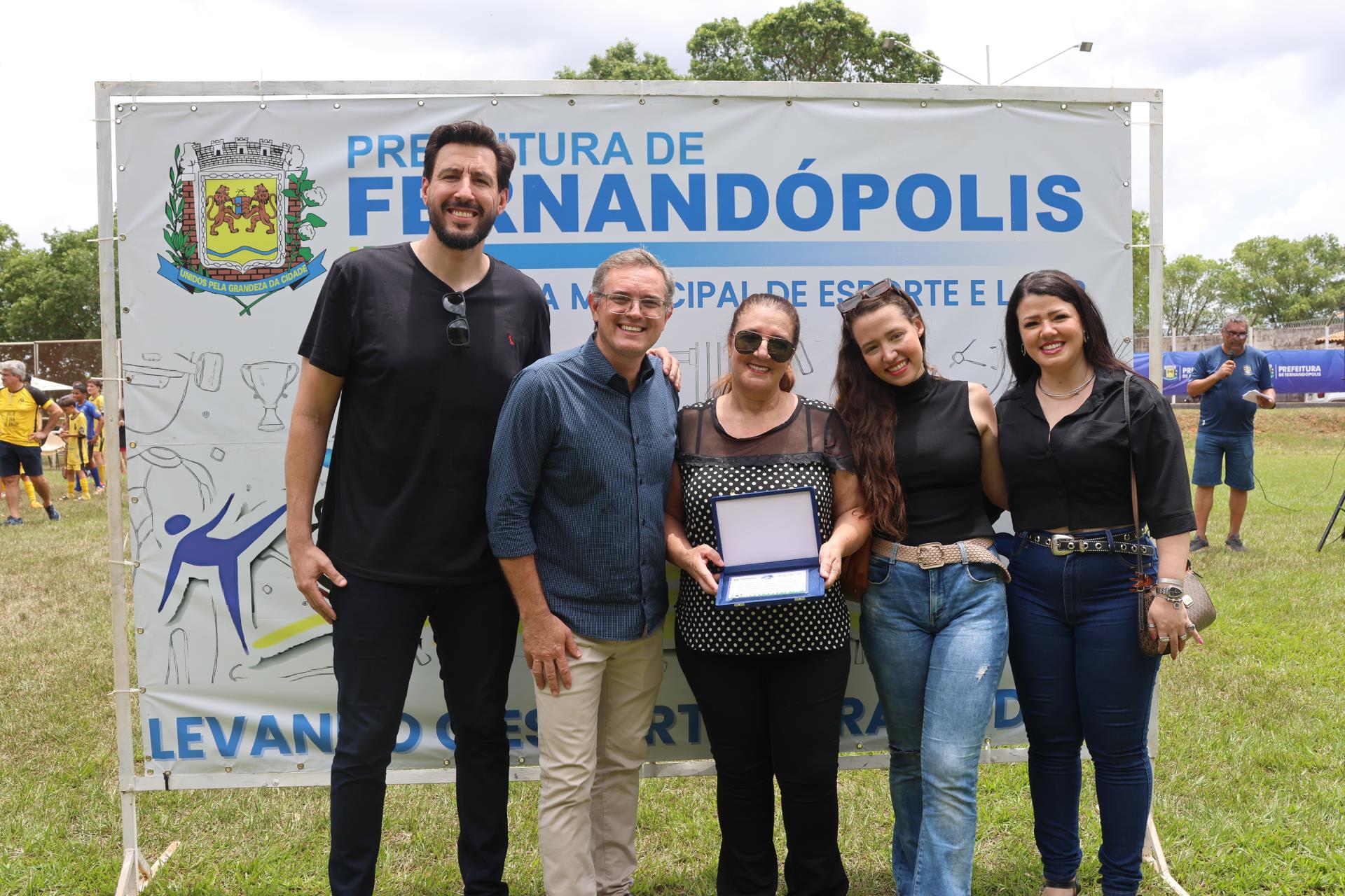 A família de Soares - a mulher Ana Maria, as filhas Rafaela e Raíssa e vários cunhados e cunhadas do antigo artilheiro compareceram ao evento, participando, ao lado do prefeito de Fernandópolis, João Paulo Cantarella, da entrega dos prêmios.