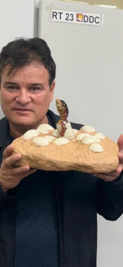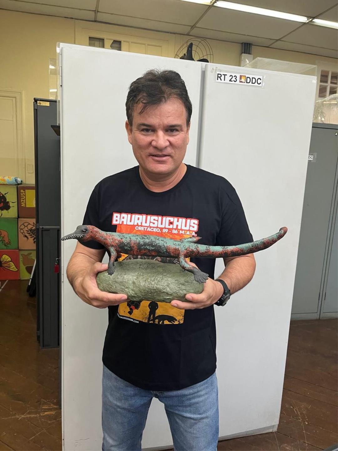 Mas é na paleontologia que seu nome ganhou ainda mais força. Cadu participou diretamente de descobertas importantes na região noroeste paulista, incluindo fósseis que ajudaram a reconstituir como era a vida em nosso território há cerca de 80 milhões de anos. Seu trabalho científico alcançou reconhecimento internacional, com destaque para o estudo sobre o Baurusuchus juvenil encontrado em Fernandópolis, um dos fósseis mais importantes do acervo do museu.