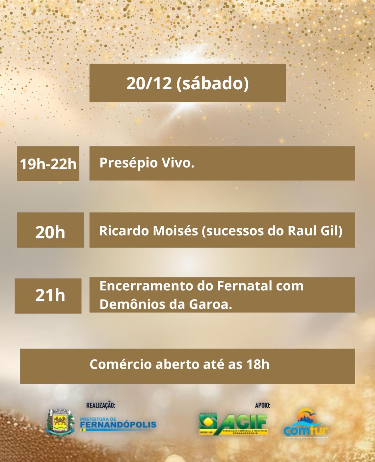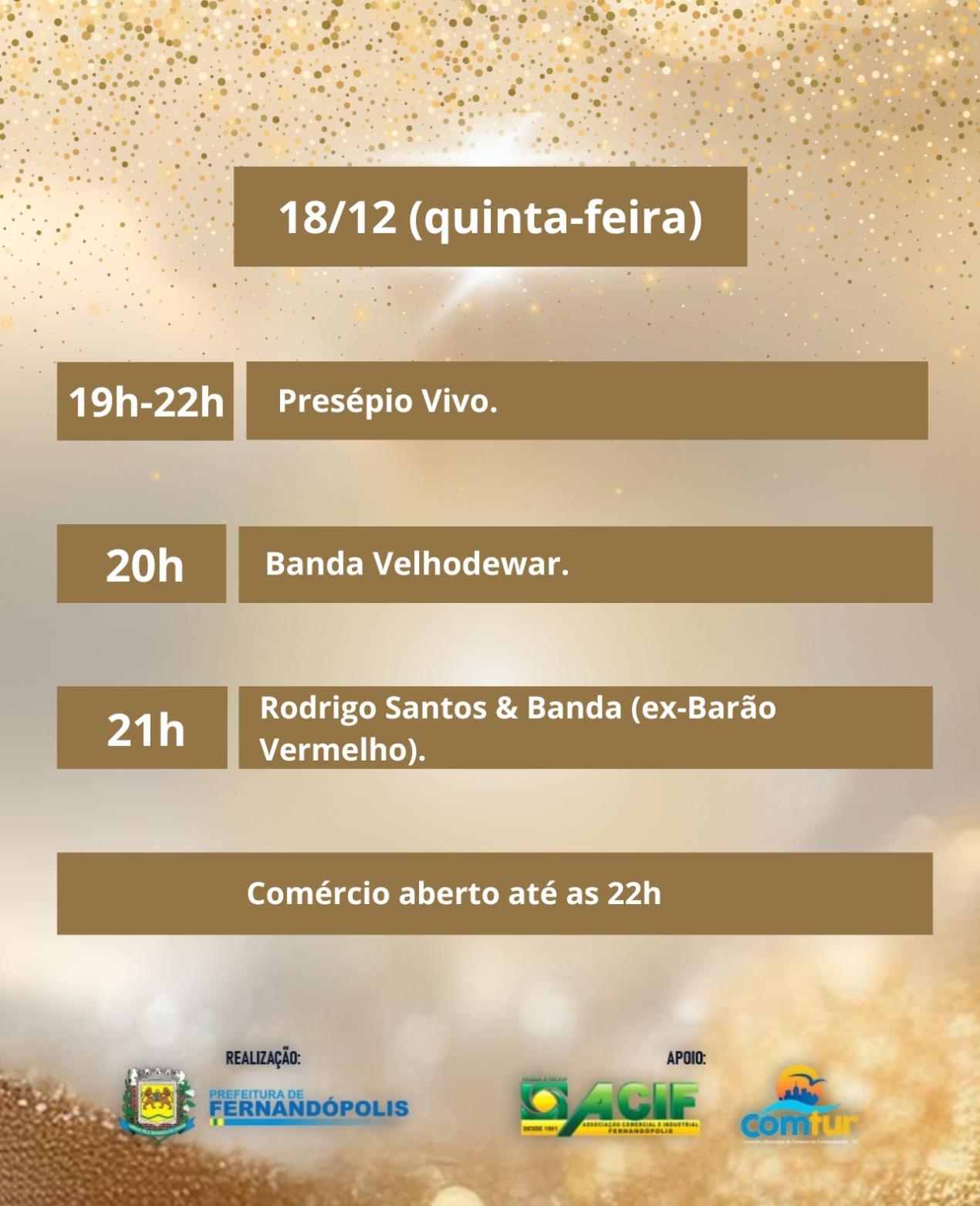 O tradicional Fernatal será aberto nesta quinta-feira (11), a partir das 18h30, com a Rua Gastronômica, que reúne barracas de entidades sociais e food trucks. O evento também contará com artesanato, apresentações culturais, presença do Papai Noel e Mamãe Noel e inauguração do túnel de luzes inédito.