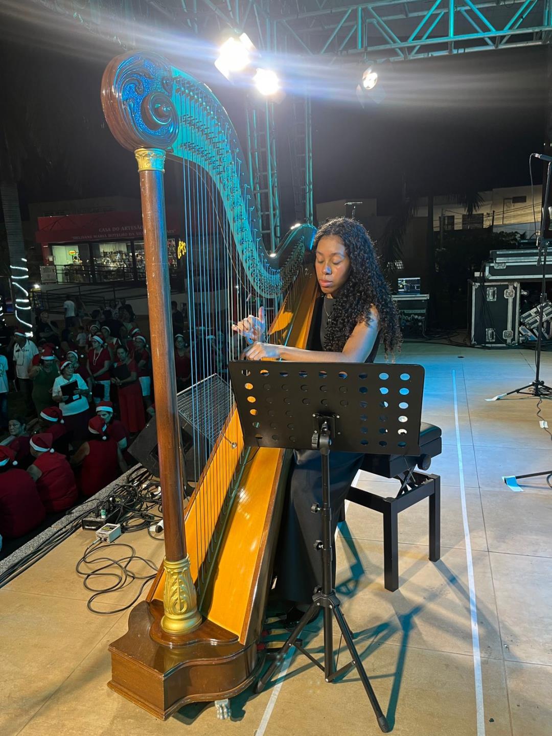 Tomada por luzes, músicas, danças, gastronomia e artesanato, a Praça Joaquim Antônio Pereira recebeu, na noite desta quinta-feira (11), o Fernatal. O evento começou com a abertura da Rua Gastronômica, que reuniu 17 entidades sociais do município e diversos food trucks, seguida da inauguração do Túnel de Luzes e da apresentação da harpista Débora Jordão.