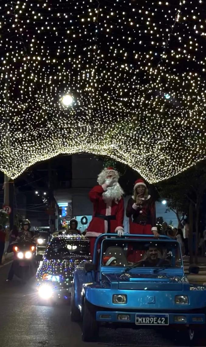 O Papai Noel e a Mamãe Noel chegaram em uma grandiosa carreata de carros antigos organizada pela CAF (Carros Antigos Fernandópolis) e pela CVAF (Clube Veículos Antigos Fernandópolis). O trajeto teve início na praça da Brasilândia e atravessou a cidade até a praça central, onde está instalada a Casinha do Papai Noel, que permanecerá aberta para receber as crianças até o dia 20.