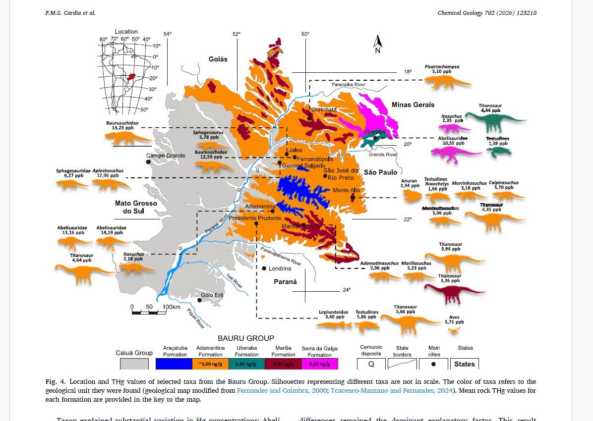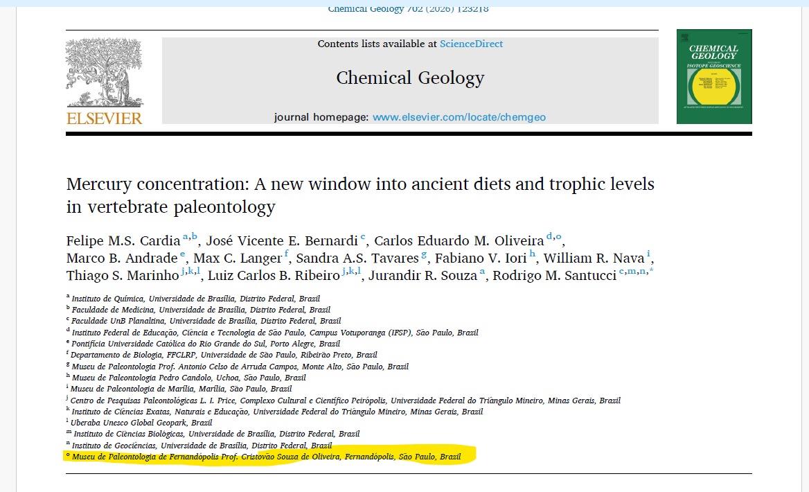 Mais uma vez, a ciência divulga internacionalmente o nome de Fernandópolis. A revista “Chemical Geology”, que é editada na Europa, publicou na edição de dezembro de 2025 uma pesquisa científica realizada por paleontólogos brasileiros sobre a cadeia alimentar da fauna brasileira no período cretáceo.