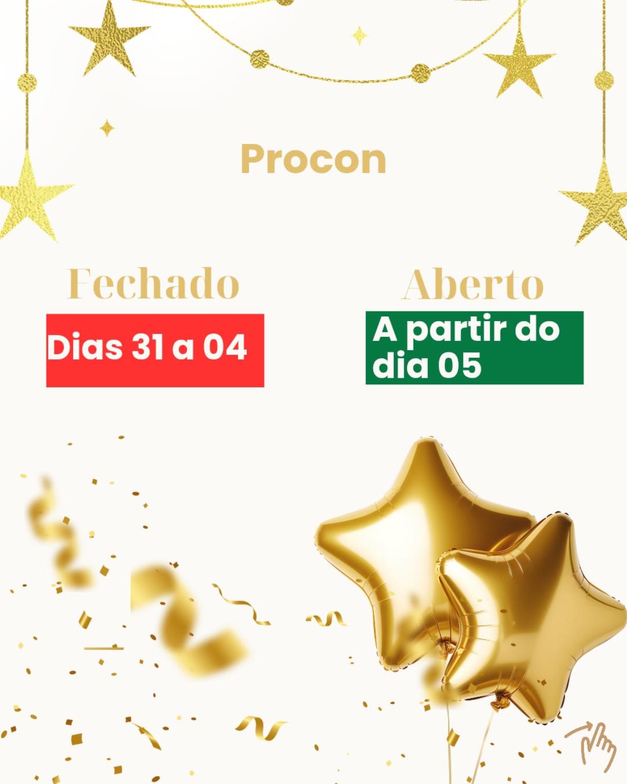 PROCON – Fechado nos dias 31/12 a 04/01. Retorna no dia 05/01