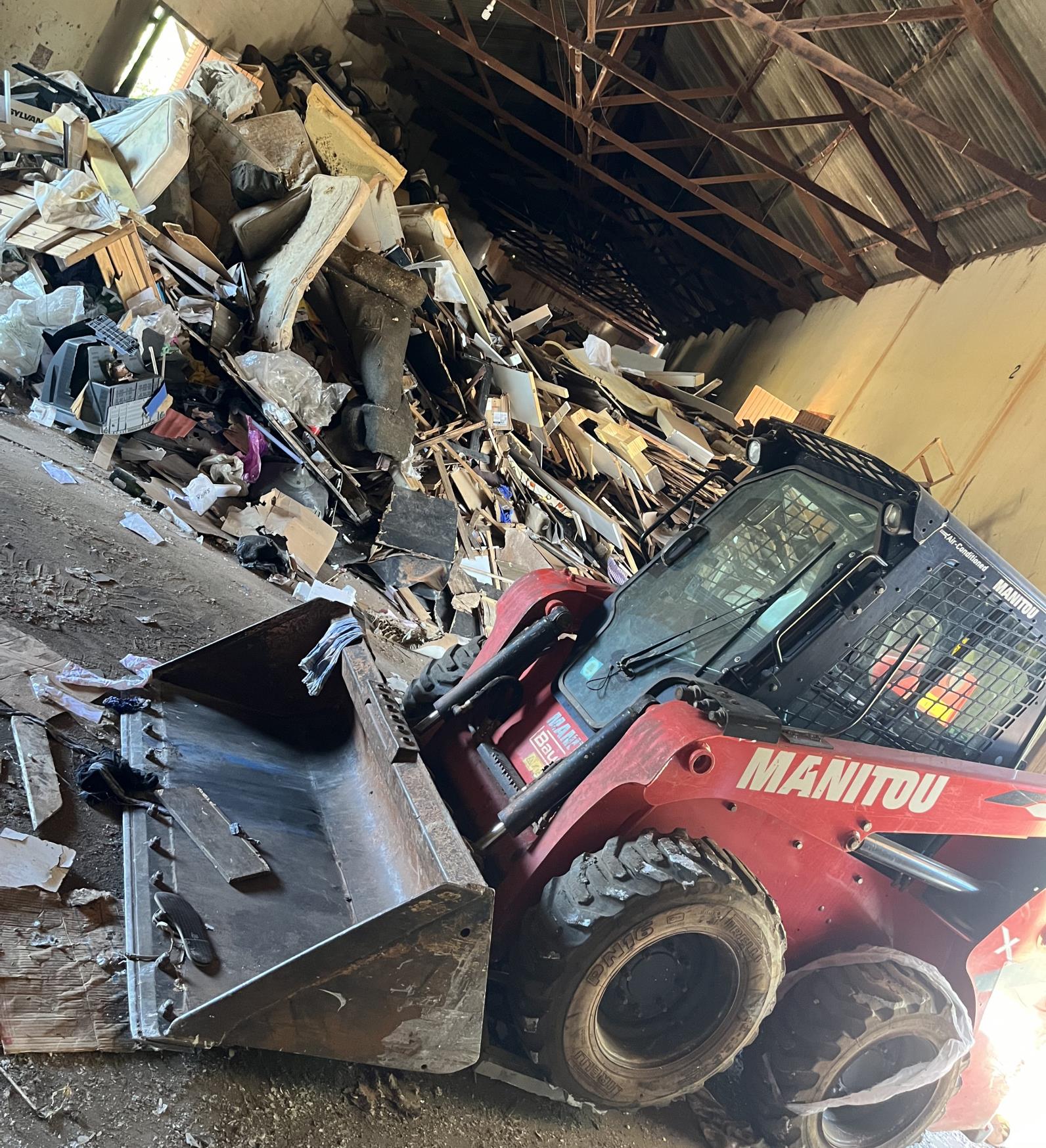 Dois caminhões e uma carregadeira trabalham na operação. O secretário Oliveira informou que o PEV passará por um processo de higienização completa.