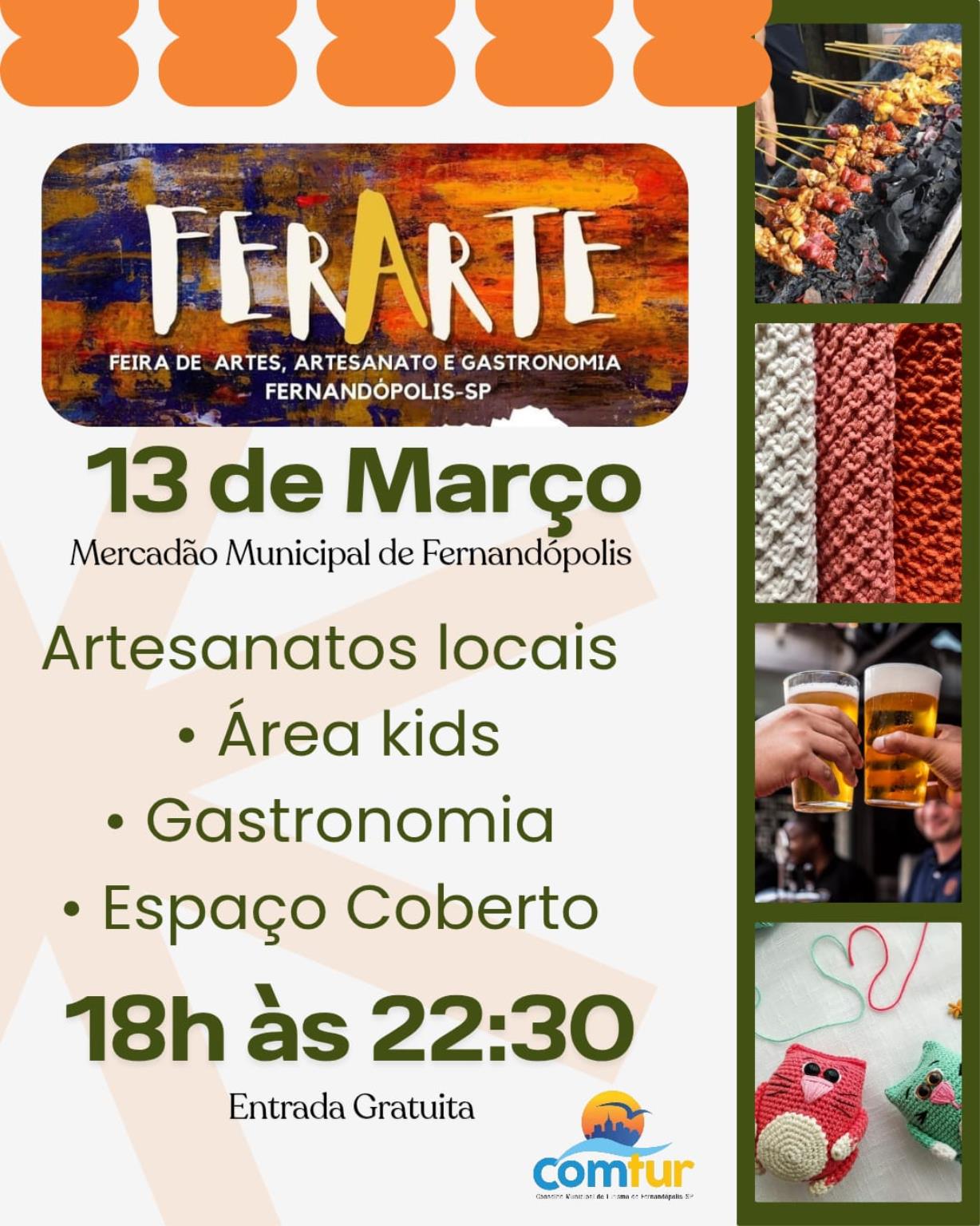 Nesta sexta-feira (13), das 18h às 22h30, acontece a tradicional Ferarte, no Mercadão Municipal. O público não precisa se preocupar com a possibilidade de chuva, já que o espaço é coberto.