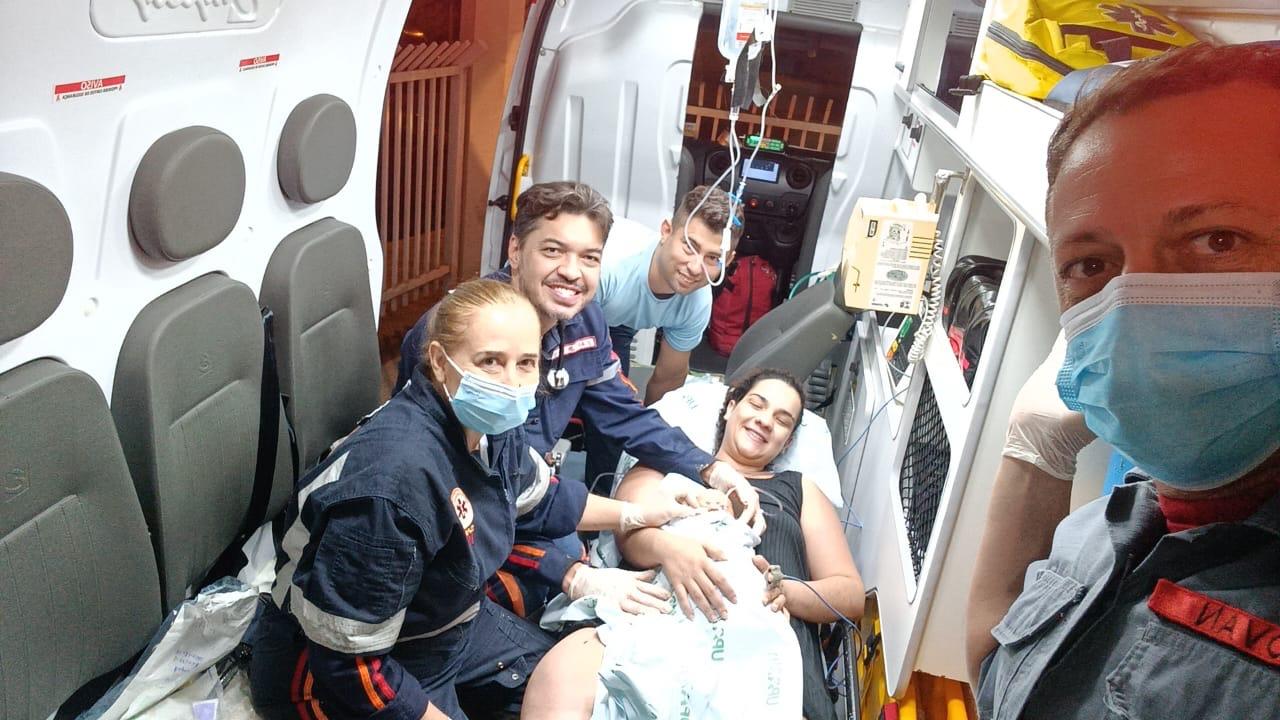 A equipe, composta pela enfermeira Alvina, pelo médico Dr. Arthur Rezende e pelo condutor Giovan, realizou o atendimento. O parto foi conduzido com segurança ainda durante o deslocamento.