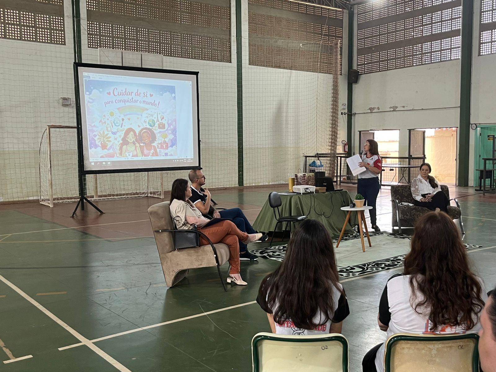 Cerca de 380 jovens participaram da ação. Sob o tema “Cuidando de si para conquistar o mundo”, a palestrante falou sobre cuidados básicos de saúde, exames e hábitos que são essenciais à preservação da saúde feminina, autoestima e bem-estar emocional.