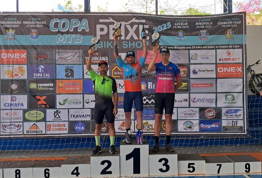 Já no domingo (19), na cidade de Osvaldo Cruz, foi realizada a grande final da 5ª edição da Copa Peixe de MTB 2025. Os atletas do município Fernando Romero e Carlos Almeida se destacaram na categoria Sport (40 a 49 anos). Fernando Romero conquistou a 3ª colocação geral da competição após uma temporada consistente nas cinco etapas da copa. Carlos Almeida também brilhou, alcançando a 5ª posição na etapa final e terminando o campeonato em 4º lugar geral. A Afercan, apoiadora oficial dos atletas, parabenizou Fernando e Carlos pelo desempenho e o comprometimento com que representaram a cidade.