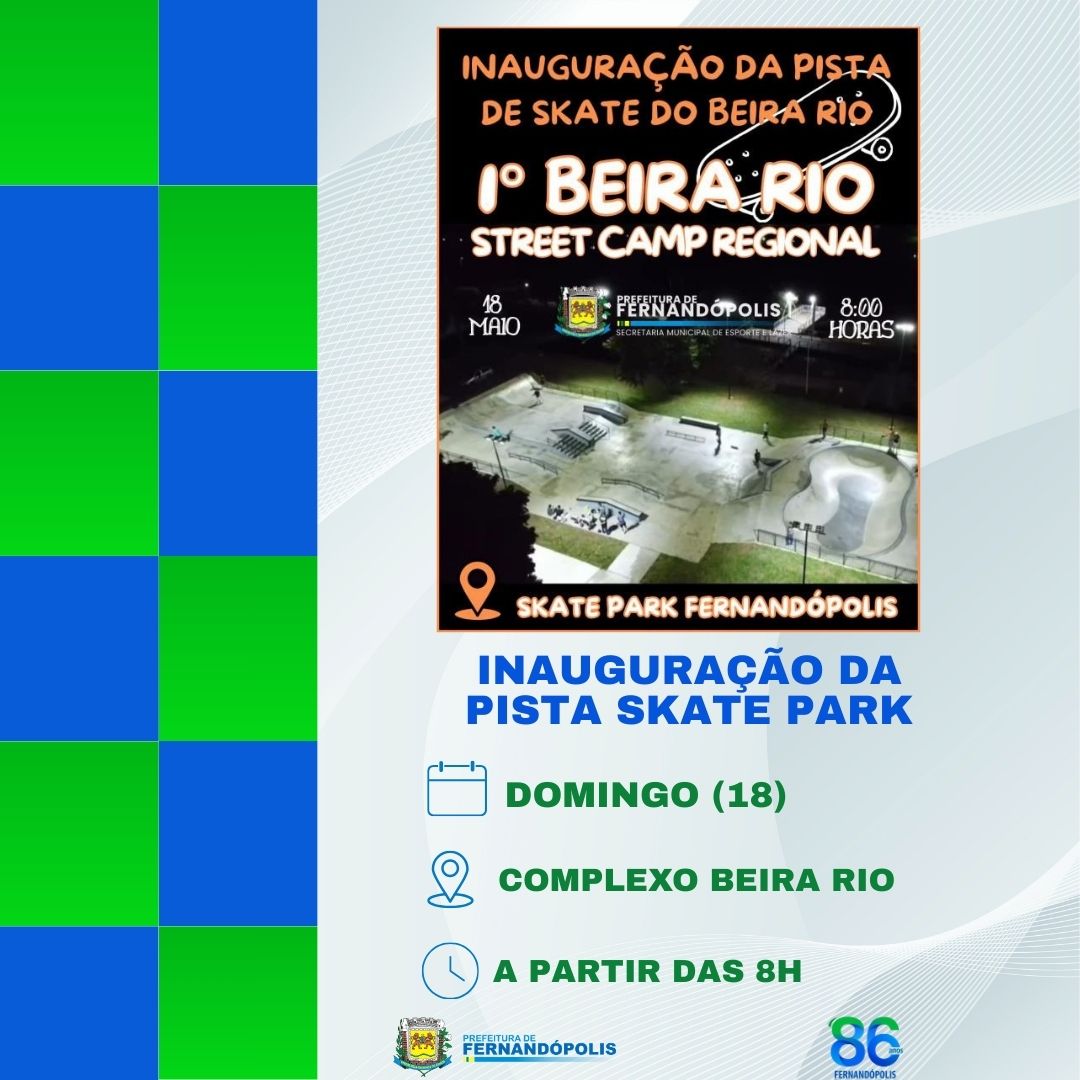 No Complexo Beira Rio, logo pela manhã (8h) terá início verdadeira maratona na pista de skate recém-construída, com a participação de skatistas mirins, iniciantes, feminino open, amadores, masters e uma demo profissional. Às 16h, acontecerá a cerimônia de inauguração oficial da pista, com a presença do prefeito João Paulo Cantarella e outras autoridades.