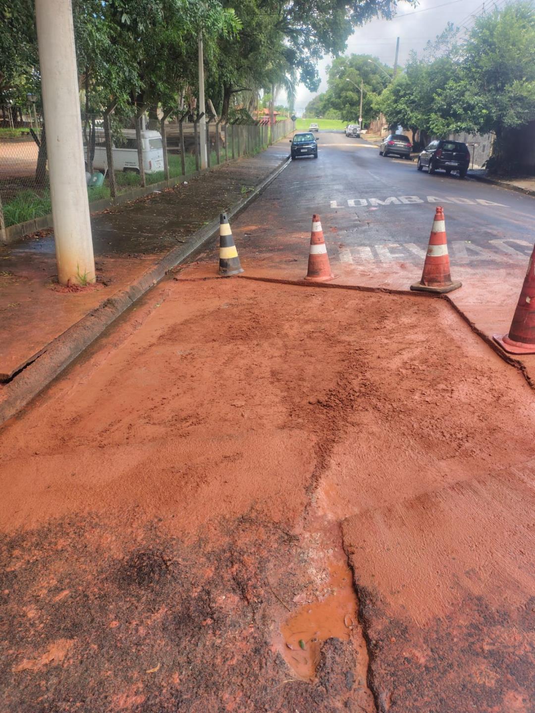 No bairro Jardim Paraíso, na Rua Belarmino Tomaz de Souza, a força da água provocou o rompimento do asfalto. As equipes atuaram rapidamente no local, realizando a retirada dos resíduos, a aplicação de solo-cimento para estabilização da base e, posteriormente, a recomposição da camada asfáltica, restabelecendo as condições adequadas de tráfego.