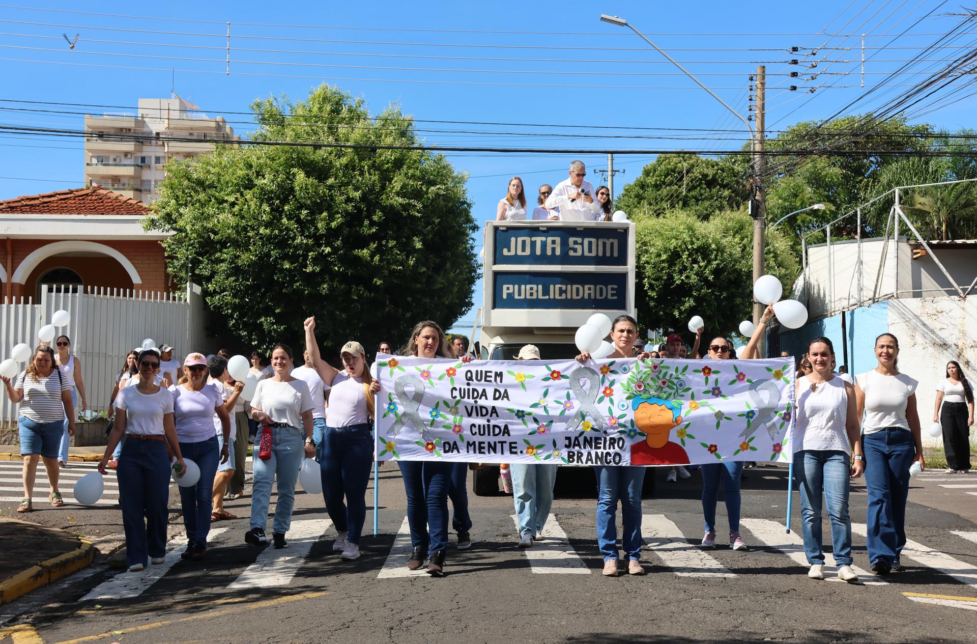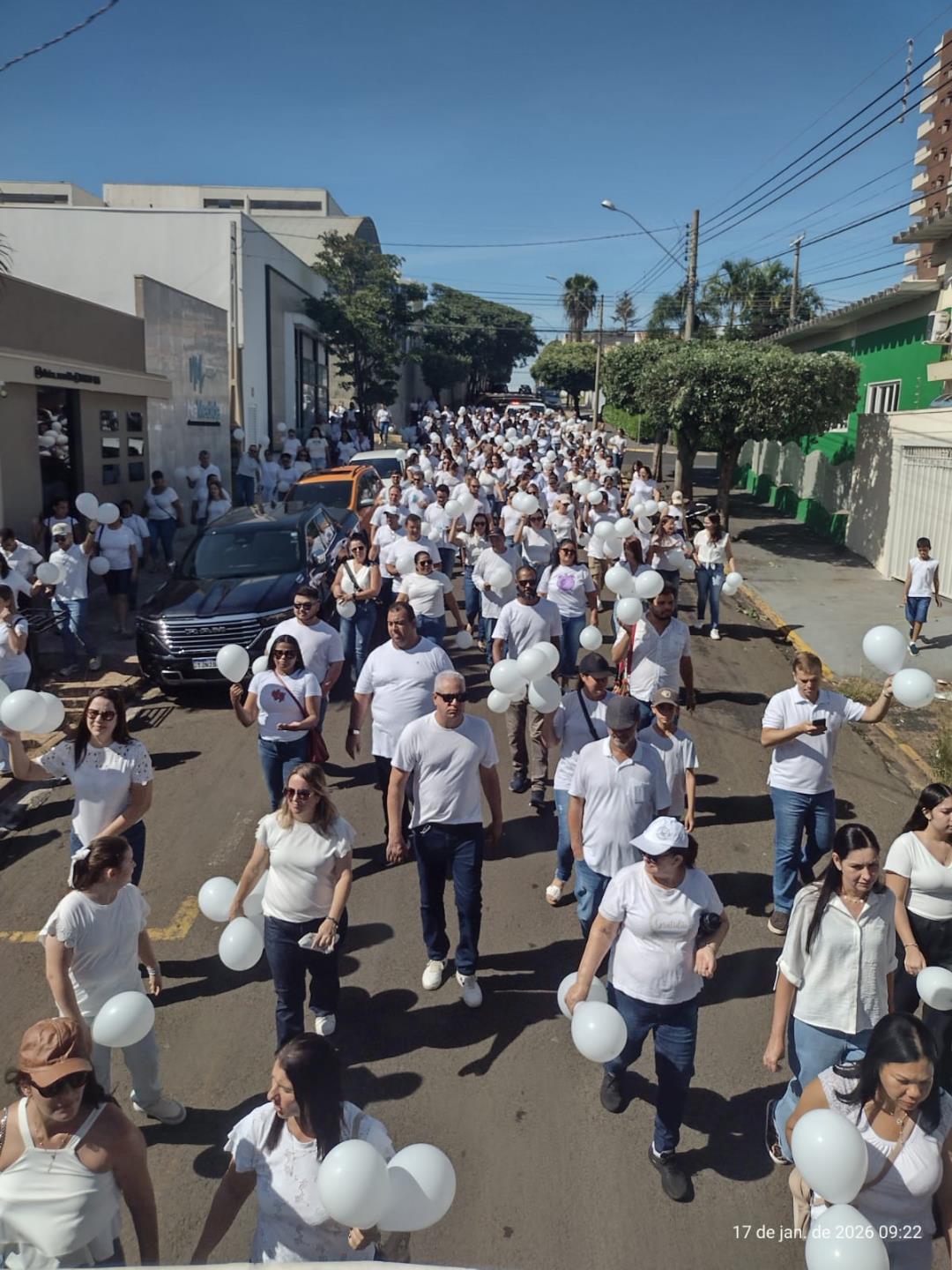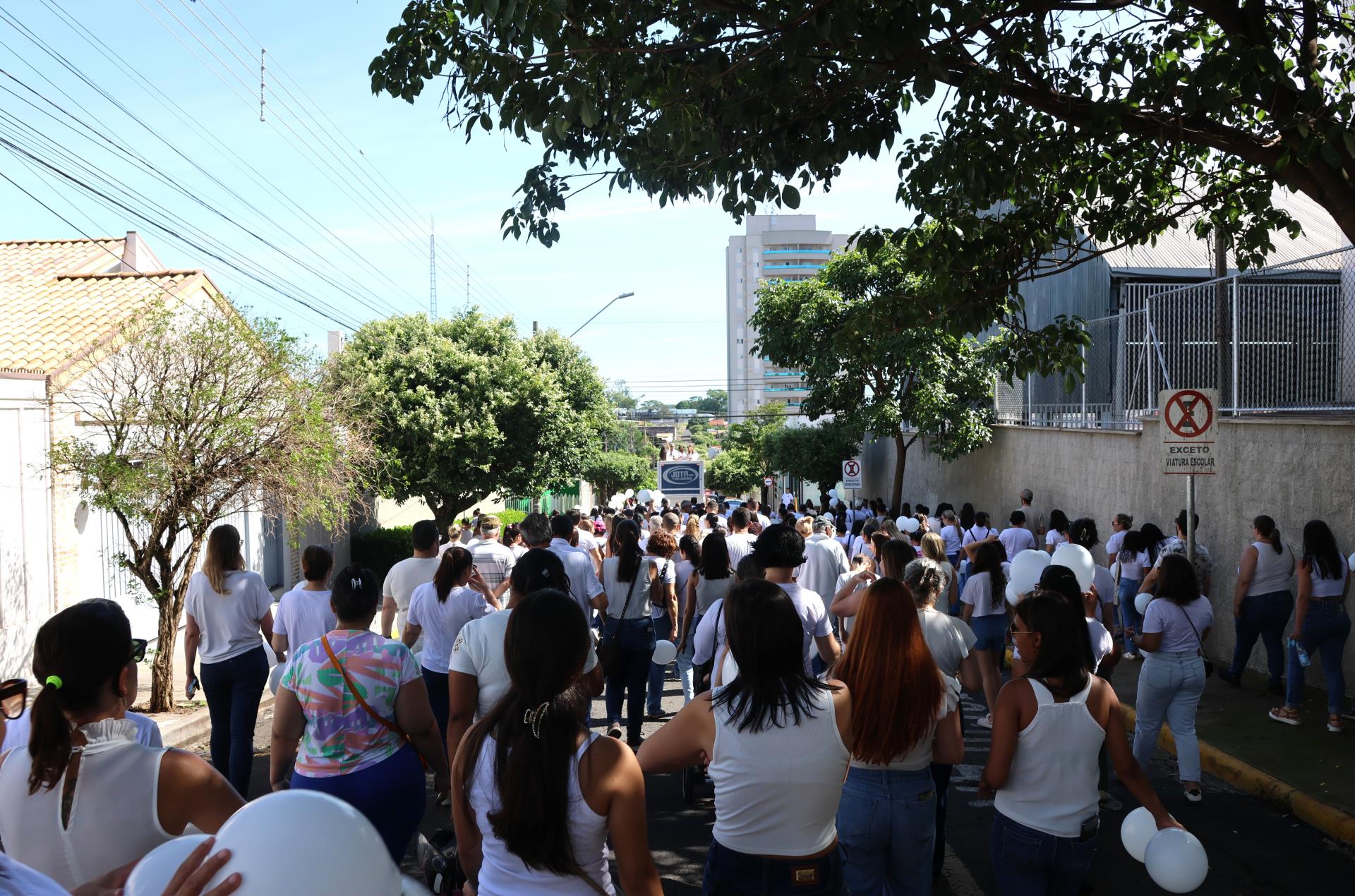 A Secretaria Municipal de Saúde promoveu no último sábado (17) a Caminhada do Janeiro Branco, que reuniu aproximadamente 300 pessoas. A ação teve início na Avenida dos Arnaldos, seguiu pelas ruas centrais da cidade e foi encerrada no Teatro Municipal.