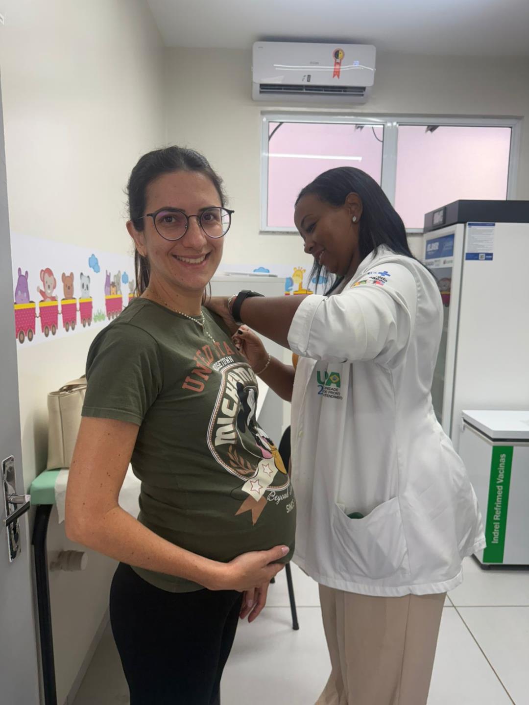 A vacina é administrada à mãe a partir da 28ª semana de gestação, transferindo anticorpos pela placenta e garantindo proteção imediata ao bebê, reduzindo hospitalizações e complicações respiratórias graves.